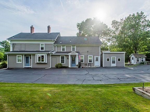 The idyllic setting for this lovely farmhouse will have you charmed from the moment you drive up. The beautiful rolling open fields, stone walls and woods will start you thinking of all the possibilities for recreation and farming. The versatile floor plan and outbuildings add to the excitement! Step inside of this 1840 Greek Revival Farmhouse, and you will understand how thoughtful renovation can keep a home of this vintage relevant for modern needs while retaining all the charm of original design. Unusual offerings include a separate office/workshop with heat and A/C away from the main household and an in-law apartment for guests,extended family or extra income. The first floor includes a beautifully renovated kitchen with cherry cabinets, granite countertops and stainless steel appliances, a wood stove in one of two living room areas, formal dining room,bedroom,full bath,laundry and a large screen porch that looks over a view of your open fields and mountains beyond. Paradise found!