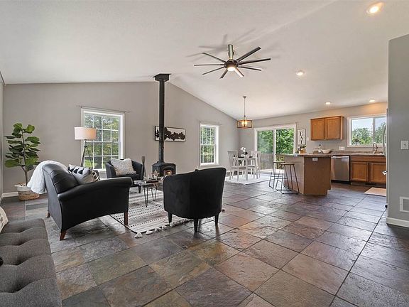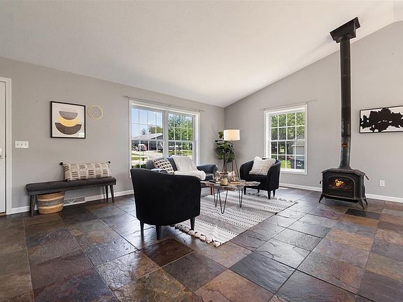 Welcome to this stunning 3-bedroom, 3-bathroom home nestled on a spacious half-acre lot. The inviting open floor plan, abundant natural light and soothing neutral color palette. The generously sized rooms and comfortable living areas create a seamless, stylish living experience. Step inside to discover a welcoming entry that leads to a living area boasting a vaulted ceiling and wood burning stove, while the kitchen features plentiful cabinetry and a large island. Adjacent is a dining space that opens onto a large deck offering tranquil wooded views. The main level primary bedroom is generously sized and includes an en-suite bath and a walk-in closet for added convenience. A second bedroom and full bath on the main level along with a sizable laundry/mudroom area off the 2-car garage adds practicality to daily living. The walk-out lower level presents a spacious family room with a wet bar, awaiting your personal finishing touches. Additionally, this level includes a third bedroom, a full bathroom, and a large storage room. Outdoor living is enhanced with a walkout lower-level patio space, perfect for entertaining. Ample storage is found throughout the home, ensuring a clutter-free environment. With its great layout and modern amenities, this home offers functionality and style. Don’t miss the opportunity to make it yours!
