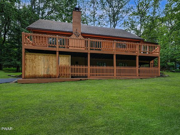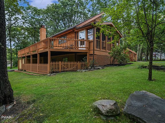 BEAUTIFUL CEDAR SIDED HOME WITH A LARGE WRAP AROUND DECK SET ON A CORNER LOT WITHIN WALKING DISTANCE TO WALKER LAKE!!! Step into the vaulted main living space, where rich hardwood floors and a classic brick fireplace create a warm and welcoming atmosphere. Oversized windows and sliding glass doors fill the home with natural light, offering year-round views of the peaceful woodland setting. At the front entrance, a covered and screened-in portion of the deck is perfect for morning coffee, evening conversations, or simply listening to the sounds of nature. The kitchen blends charm and functionality with wood cabinetry, stainless steel appliances, and a breakfast bar that makes casual dining or entertaining easy. Both bedrooms are generously sized, providing plenty of space to relax and recharge, while the attached garage adds everyday convenience for parking, storage, or workshop use. The lower level offers room to grow - with new lighting already installed and only flooring needed to create an entirely new living area. Whether you imagine a family room, guest suites, home office, or hobby space, this level gives you the flexibility to shape the home to fit your needs now and in the future. This home also enjoys a prime location within the community -- you can walk to the private lake access, where peaceful water views and recreation are just steps from your door. Enjoy fishing, kayaking, or simply soaking up the natural beauty of the area. Whether you're seeking a full-time residence or a weekend escape, this property strikes a rare balance of comfort, privacy, and potential. Experience single-level living, space to expand, and a tranquil woodland setting -- all with community amenities close at hand. Just a short drive from the historic town of Milford and set within Delaware Valley School district, this is the one you have been waiting for!