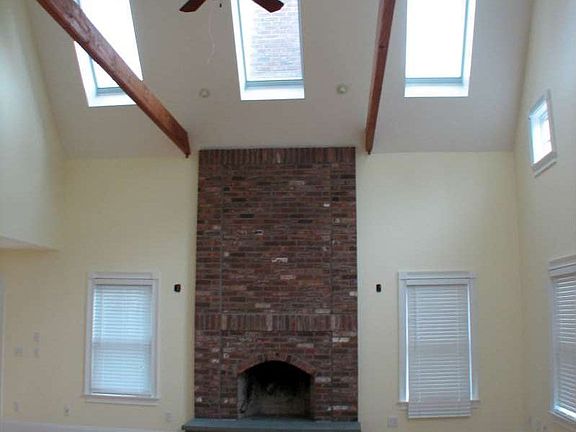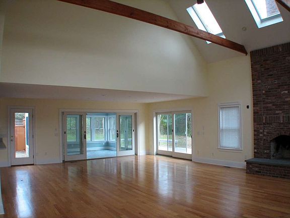 Contemporary Cape, looks like brand new! Quality 2X6 construction, 50 year roof. Dramatic open floor plan with cathedral ceilings, floor-to-ceiling fireplace and remote control skylights! Wired for surround sound an plasma TV! House has 3 beds but has a 2-bed septic due to zoning restrictions.