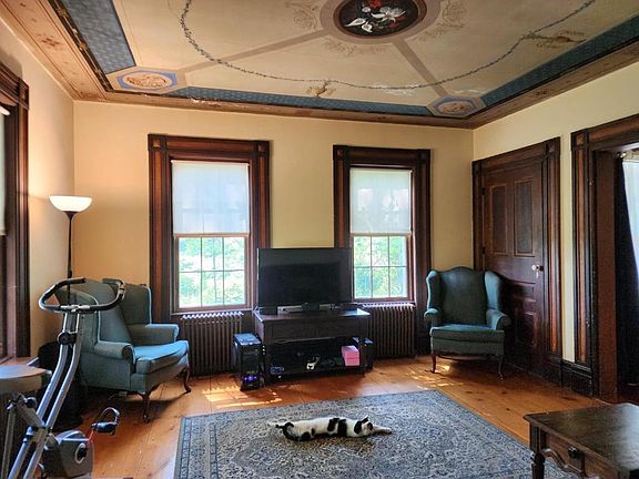 They don't make them like they used to! Located in the heart of Slaterville Springs, this traditional style home is less than 20 minutes from Downtown Ithaca, Ithaca, College, Cornell University, Village of Dryden and TC3. This stately 1848 farmhouse offers 4 bedrooms, 1.5 baths, a woodworking shop, a small barn, and a pond on just over 4 acres. You'll be transported to the days of yesteryear when you walk across the wide plank floors throughout (some are 17+!). The hand painted ceiling in the living room is a sight to behold. The basement is exceptionally dry and the Thermo Control boiler utilizes both wood fuel and propane. While much of the traditional charm remains intact, the house is fully equipped with high-speed Spectrum Internet and a professionally wired network; working from home will always be an option.