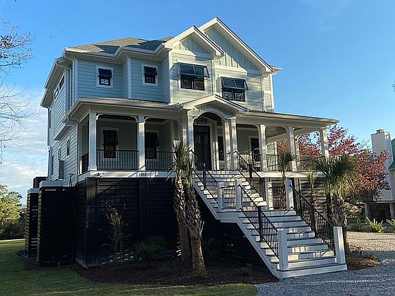 High end raised house with inverted floor plan to get a great view of the marsh.