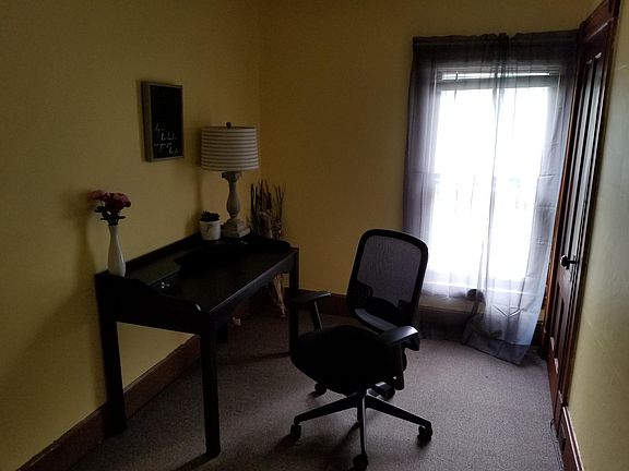 2 br furnished 2nd floor apartment with separate dining room and an office. In unit washer and dryer. Includes off street parking and a back yard with a play structure, soccer net and fire pit. Heat, hot water, trash removal and plowing included in rent.