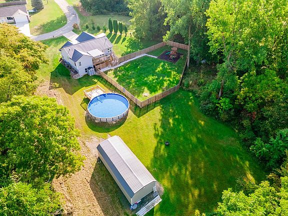 Discover the epitome of contemporary living in this stunning home set on 2.93 acres within the coveted Woodland Hills subdivision. With 5 bedrooms and 3 bathrooms spread across 2,592 square feet, the residence boasts vaulted ceilings and a sleek, modern ambiance. The chef's kitchen is a showstopper with built-in dual ovens, a gas top stove, stainless steel appliances, and an expansive waterfall quartz island. The walk-out basement leads to a private retreat featuring a huge above-ground pool, hot tub, and a fenced play area for the kids. All new within the last 3 years. Additional amenities include a 16x40 lofted shed, a new metal roof, New HVAC, and an abundance of new flooring, making this property a perfect blend of style, comfort, and outdoor allure. Embrace the country charm of Lagrange and make this modern haven your own.