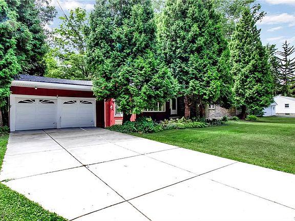 VR Pricing Seller will consider offers between $219,900-$229,900! Spacious 4 BR, 2 Bath Ranch home on 1.9 acres! The front entryway welcomes you to this sought after open floorplan! Bright living rm with hardwood floors and gas fireplace, dining rm, eat-in kitchen with loads of cabinets, built in appliances, granite counters, double sinks, under-the-cabinet lighting and huge walk-in pantry! 4 good size bedms with great closets, one has its own private sink! 2 full baths; one with double sink, granite vanity and tile tub surround. Bonus rm could be an office/playroom/nursery. First floor laundry room with extra cabinets and oversized storage closet. Full basement that could be finished! 2 car garage, Roof 2018, freshly painted, new carpeting. Close to shopping and thruway! Basic STAR $635!
