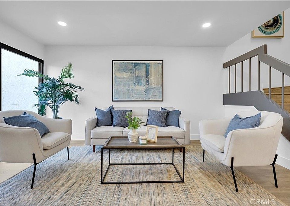 Welcome to this highly desirable townhome in the city of Anaheim. This completely renovated 2 bedroom, 2.5 bathroom gem offers a spacious and tastefully upgraded living space spanning 1,127 square feet. Step inside and be greeted by the modern and stylish finishes that adorn every corner of this move-in ready home. The open concept floor plan seamlessly connects the living, dining, and kitchen areas, creating an inviting and functional space for both relaxation and entertainment. The kitchen boasts sleek countertops, stainless steel appliances, and ample storage space, making it a chef's dream. The adjacent dining area is perfect for hosting intimate dinners or casual gatherings with friends and family.