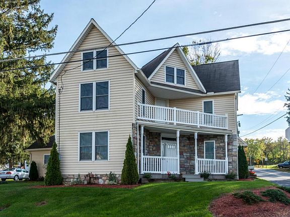 Victorian style 2-story on a corner lot. Home features a completely new exterior with new windows, siding, gutters, downspouts, porch and fully re-insulated. 3 large bedrooms, first floor dining or family room and a large second floor balcony with a nice view. Seller has installed some new carpeting and a fresh coat of paint. Well maintained house and a I car detached garage.