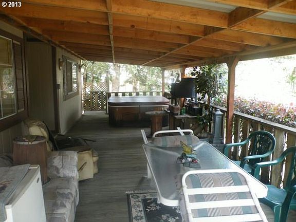 Tucked away in the trees, this manf home is in a delightful location! Great covered deck with hot tub, attached carport, good parking.