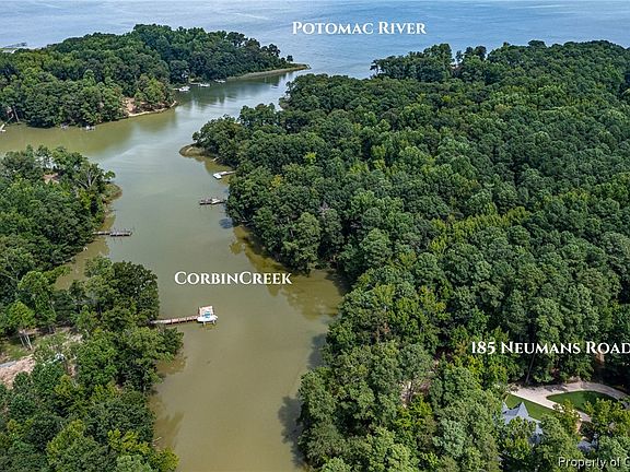 Lose yourself in nature’s beauty and serenity. This delightful waterfront home blends perfectly in the company of 5 park-like acres and mature landscaping on Corbin Creek just off the Potomac River. Private, pristine water views from the Living Room, Primary Bedroom and Breakfast Room. This 3 bedroom, 2.5 bath home has many upgrades, including an enlarged First floor Primary ensuite, with sumptuous, spa-inspired bath with Turkish marble overlooking one of the gardens. Kitchen has gleaming quartz countertops, tall windows, tile backsplash and updated appliances.Anderson windows and hardwood floors in most of the home. Carefree composite decking on the oversized waterside deck, front porch and breezeway. Large, conditioned basement for your storage needs or could be a great workshop.The 3-bay garage is connected by a covered breezeway. And, the 414 square feet, fully equipped garage apartment is the perfect retreat for guests and even has its own private deck and washer/dryer in the garage bay below. A community common area on the Potomac River is a short walk away. New roof 2022,New upstairs HVAC 2023,Interior Painting Professionally freshened 2023 So many updates; ask for the list.