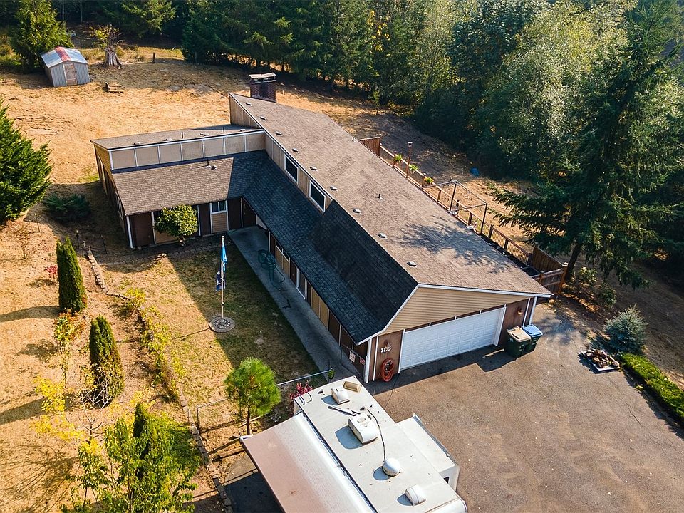 Super opportunity! Large square footage on an acre. Almost all living space on the main floor with bonus rec room - complete with bar in the walk out basement. Looking for a huge primary bedroom? This home has a very spacious primary with en suite 3/4 bath with oversized shower. Forced air and heat pump to efficiently heat and cool, but the wood burning fireplace in the living room adds the perfect ambiance for cozy nights indoors. A beautiful dining room with vaulted ceiling and upper windows connects to a open and well designed kitchen. Enjoy the wildlife and beautiful landscape of your perfect acre from the large back deck. Double car garage with storage. Mature landscaping, garden boxes, storage shed, private yard, and nature trails!