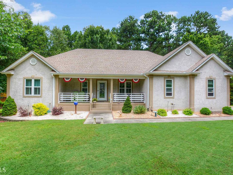 BEAUTIFUL, PRISTINE RANCH ON 0.8+/- ACRE LOT IN NORTH COWETA! 3 Br, 2 Ba, Family room w/f/p & 2 ceiling fans plus a vaulted ceiling. Formal DR. Kitchen w/granite countertops & hickory cabinets, pantry, laminate flooring, bkfst bar & bkfst area, stainless appliances - natural gas range, built-in microwave, dw, refrigerator & sink. Laundry room. Dbl garage w/remote access & pull down attic access for storage. Master on main level has trey ceiling & ceiling fan. Master Ba w/garden tub, separate shower, walk-in closet, granite countertop, 2 designer sinks. Central HVAC. Covered porch. Crawl space has concrete floor for storage area. Fantastic landscaping. Sprinkler system in back yard only. Parklike & private back yard. Easy access to I-85 & shopping!