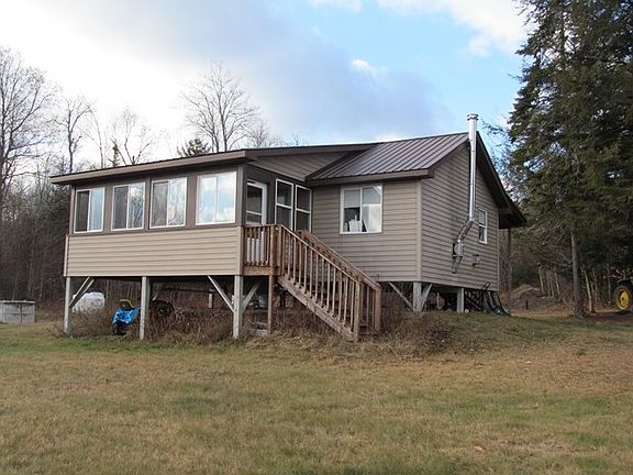 CABIN IN THE WOODS - new in 2001, away from it all,OFF THE GRID,featuring propane heat,refrigerator & cookstove plus generator,enclosed porch overlooking large meadow,all on 82 acres,a mix of open area and woods, bordered by state forest on one side, brook and small ponds - much more for the outdoor enthusiast