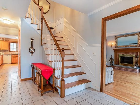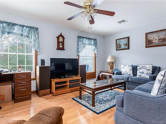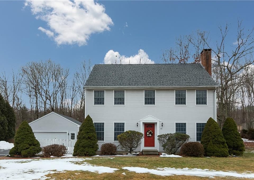 Pride of ownership is evident in this custom-built Saltbox style home located on a cul-de-sac in a neighborhood setting. Guests are welcomed through an open foyer connecting the entrance to the den or office on the left and the spacious living room and open dining room to the right. The centerpiece of the living room is the wood burning fireplace creating a relaxing atmosphere while adding warmth of a real wood fire to both the living room and dining room. Hardwood floors grace the living room, dining room and den. Off the dining room is the kitchen with granite countertops, a pantry, and an eat-in area with two ways out. Sliders off the kitchen lead out to the patio and private back yard while another door leads out to the driveway and detached garage. A convenient coat closet is strategically placed in the kitchen. A half bath completes the main level living space. The staircase leading to the upper level includes wainscotting and built-in shelves. The upper level includes the master suite with a full bath and walk-in closet plus two additional bedrooms, a hall bath and a walk-in attic for easy storage. Central AC throughout, a new roof in 2019, a 2-car detached oversize garage with 10 ceilings and workshop with power, a Colligan water system, high efficiency Trane AC unit, 6-inch thickness interior walls, Grade A hardwood floors and wood trim on the main level and a 10 x 10 exterior shed completes this fine home!
