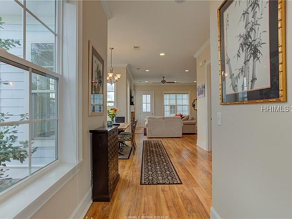 Magnificent Custom Home, with beautiful upgrades not found at this price. This Charleston Style Home has Master on Main Floor, with a Large, gorgeous bathroom, soaking Tub, and walk-in shower. High ceilings, 8' doors, crown molding, extensive trim work, granite counters, and cell foam insulation throughout the walls and in the attic. Ample storage in 2 attics. Natural Gas Range, Tankless Gas Hot Water add to this energy efficient home. Hardie Siding, and Savannah Gray Brick accents and Porch/Patio. Walking distance to New Amenities: Fitness, Pool, Pickleball, Golf Course, Restaurant. detached 2 Car plus Golf Cart Garage w/ covered walkway. A+