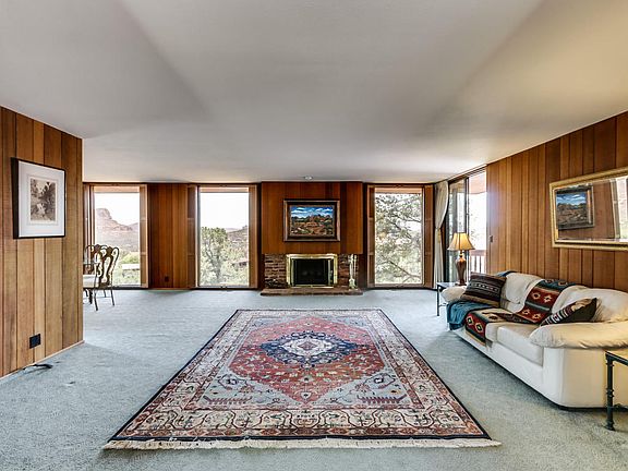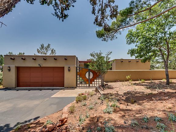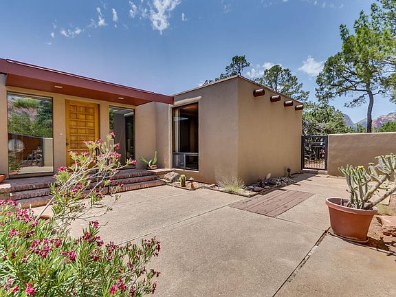 This home sits on top of the world w/ panoramic, unobstructed views of all of Sedona. True single level living offering unique architecture, courtyard entry & 2car garage combine for a stylish welcome you won't forget. Floor to ceiling windows and patio doors allow you to admire the awe inspiring red rock vistas from every direction from the dining room. Sip coffee or enjoy a late night libation on either of the 2 viewing decks. This 3 bdrm, 2bth home (with a half-acre plus lot)has roomy split floor plan, new stainless appliances on hand to create your favorite meals. A gated closed-in front courtyard provides a quiet break area or small pet enclosure. Exterior has new synthetic stucco for long lasting appeal and looks. Amazing location in Uptown to walk to shops, the market,& restaurants.