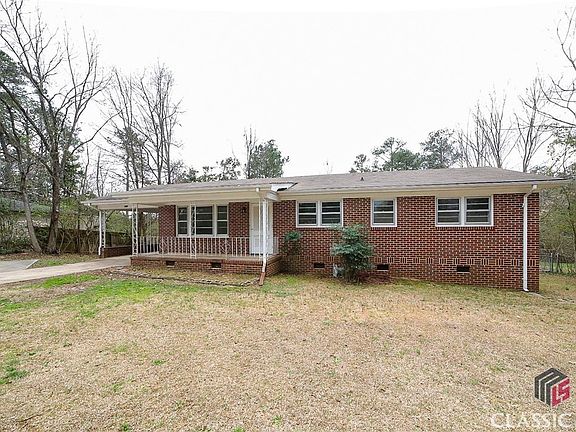 Nestled in desirable West Athens, this all-brick ranch offers timeless appeal and move-in ready condition. Hosting an easy-living concept, this thoughtfully designed formal floor plan seamlessly connects each inviting space. The spacious living room spans the front of the home and welcomes you with its warmth and natural light. Providing an effortless transition, the living area transitions into a spacious formal dining room that could easily transform into a cozy secondary living area, such as a keeping room. Entertaining and serving piping hot meals with ease are made possible with the well-equipped kitchen placed directly off the dining in room. The kitchen features pine-paneled walls, floor-to-ceiling solid pine cabinets, ample counter space, and essential appliances. Tucked away down the hallway are three cozy bedrooms and one and a half tiled baths, providing a peaceful retreat for rest and relaxation. Gleaming hardwood floors flow throughout, adding both elegance and durability. When you need a little fresh air or want to enjoy the verdant Spring yards, just outside the rocking chair front porch awaits. Additionally, this quaint cottage is complete with a single-car carport that could be used as a covered patio, and an enclosed laundry room. The expansive fenced rear yard provides ample space for outdoor gatherings or simply enjoying the serene surroundings. With its desirable in-town location offering quick access to Loop 10 and just minutes from Downtown Athens and UGA, this humble abode truly embodies comfortable living in a coveted locale.