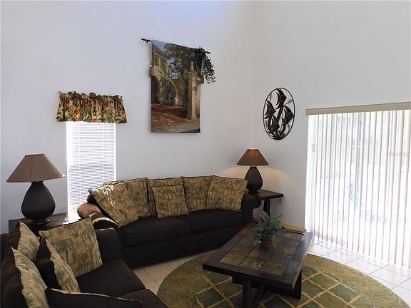 Don't let this one pass you by. This well presented open concept two story home is located on the very popular Lake Wilson Preserve. With no rear neighbors morning coffee or breakfast by the West facing pool is always a pleasure in this home. The home has 4 bedrooms, and 3 bathrooms, the living room has a vaulted ceiling. The home is being sold furnished and is ready to continue in the vacation market, or become a beautiful permanent home. A good sized master suite has a large walk in closet and an en-suite bathroom with walk in shower, dual vanities and large soaking tub. There is a secondary master on the first floor, with adjacent bathroom. All bedrooms have good closet space and there is a large owners closet in the entrance hall. The home is just a short drive to Champions Gate golf course, and the theme parks, with good access to I4, and is zoned for short term rental. The property has a strong vacation rental history, The monthly HOA fee includes the supply of basic cable TV service and yard care.