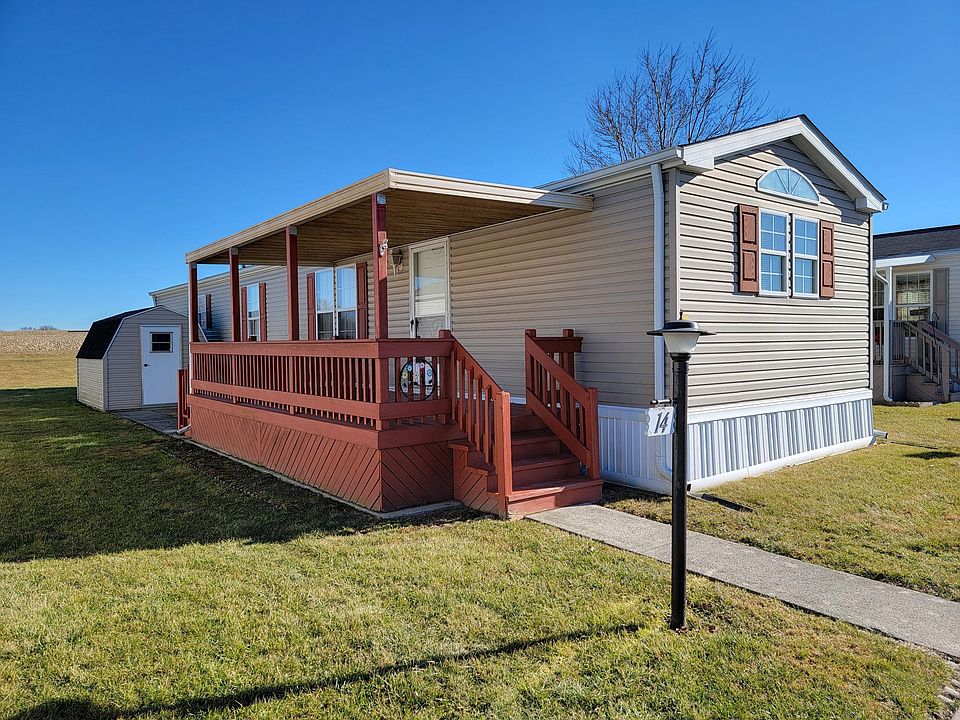 Nestled in a nicely-maintained community, this comfortable mobile home offers an ample-sized living room, light-filled eat-in kitchen with breakfast bar, and nice-sized bathroom. Outdoor storage shed is included and a covered deck provides a great spot to enjoy the countryside and you'll love the farmland views from the back yard! This home is located in a quiet area, close to local shopping, restaurants, & major roadways. One year contract renews month-to-month after the first year.