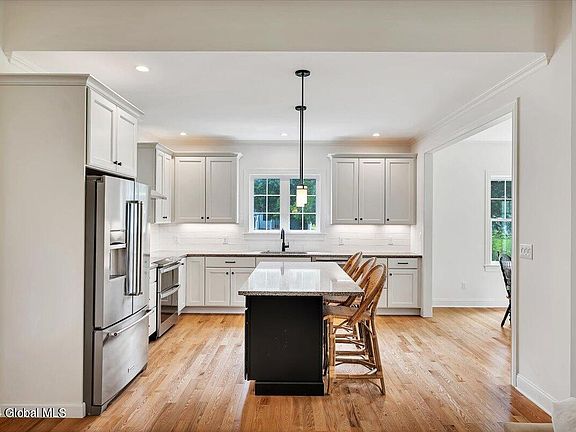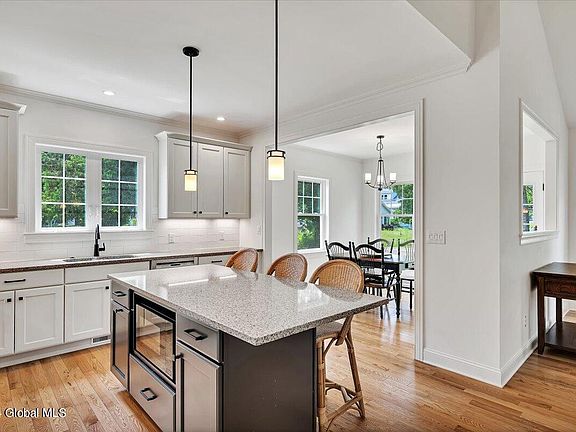 This stunning custom-built home is just over 2 years young, offering the allure of new construction without the wait. Its welcoming floor plan boasts a spacious kitchen equipped with high-end appliances, granite countertops, and a large island. The family room beams with natural light, featuring vaulted ceilings and beautiful hardwood floors that extend throughout the main living areas. The first-floor primary suite is a luxurious retreat, complete with a walk-in closet, tiled shower backsplash, and double vanity. Additional highlights include a first-floor laundry room, mudroom, separate office/den, open staircase, ample storage, an oversized two-car garage, and more! Ideally situated just a short stroll away from the scenic rail trail, and 5 minutes from Elm Avenue Park!