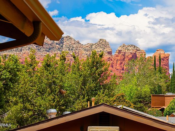 West Sedona location, privacy, Red Rock views, and excellent condition? Look no further! This adorable home has three Trex type decks to take in views of Thunder Mountain & Coffee Pot Rock. Immaculate turn key condition, 3 bedrooms plus an office nook with charming bay window, fenced backyard for Fido, with beds for gardening, and two garages make this home a very affordable option. Level entry from garage, 220V in garage. The HVAC Furnace and Air Conditioner is new as of March 2022, water heater is new as of March 2022, new garage doors and tracks. New induction stovetop and new stainless steel refrigerator, plus four new ceiling fans/light fixtures. Nest thermostat, new ''Dusk to Dawn'' front door lights. Hiking Trail access via neighborhood social trail only 3/4 mile away. All new re-insulation of the attic, plus sealing of old evaporative cooler vents, new weatherization of front door and new weatherization of garage entry door, with CozyHome doing a home energy audit before completing the work. Asphalt Shingle roof is barely halfway through it's lifetime at only 12 years old. Property has TWO garages-both are oversized single car garages. One could be for parking, and one could be for workshop, hobby area, or artist studio-have fun deciding! Ample parking with paved driveway plus a pull through gravel driveway...great for RV parking! It's rare to see a Sedona home this well taken care of with clear pride of ownership. West Sedona location means you have City amenities, with an abundance of hiking trails and natural beauty to choose from on a daily basis. Come see what peaceful Sedona living is all about, and schedule a showing today!