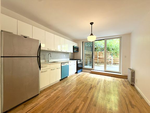 Located on the Garden floor (1st floor) of a newly renovated 4-unit brick townhouse, 1 block from uber trendy Bedford Avenue in Williamsburg, this spacious 2-Bedroom Unit featuring Glass Sliding doors that open to private backyard offers the perfect balance of modern convenience and style, with pre-war space and comfort. The home features an expansive living room and a large eat-in kitchen with all stainless steel appliances, a dishwasher, and built-in microwave. Glass sliding doors open directly from the kitchen to the private backyard offering a true indoor-outdoor living experience. Both bedrooms are spacious and with ample closet space. The unit is smartly renovated for both need and comfort. From a newly renovated bathroom offering full size dual sinks, to an in-unit washer and dryer, to central air, video intercom, and hardwood floors. Fine touches were made throughout to elevate the living experience. With a dedicated storage and a spacious layout, this residence is a rare find in Brooklyn's most sought-after neighborhoods. 185 S 2nd Street is situated in a prime location close to the L, G, and J,M,& Z trains. 1 block from Bedford Avenue and surrounded by the very best NYC's living has to offer, including the plethora of the best boutiques and entertainment only found in the pulsating excitement of Williamsburg. Don't miss your chance to be a part of this dynamic neighborhood and schedule a viewing today! Application Fee: $20 - Per Applicant, Credit Check