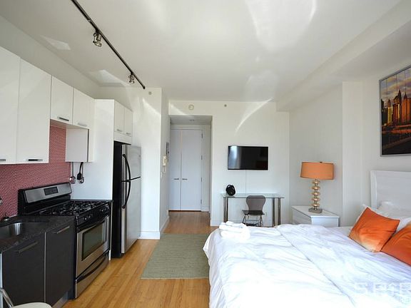 Welcome to 185 South 4th. Beautiful studio apartment in prime South Williamsburg location. Gorgeous luxury elevator building. Garage parking available. Gym. Amazing roof deck with 360 degree views of Brooklyn and Manhattan. Part-time concierge. Laundry and dishwasher in unit. Storage lockers available for extra charge. Tenant doesn't pay a fee on a two year lease. 1/2 month fee on 1 year lease.