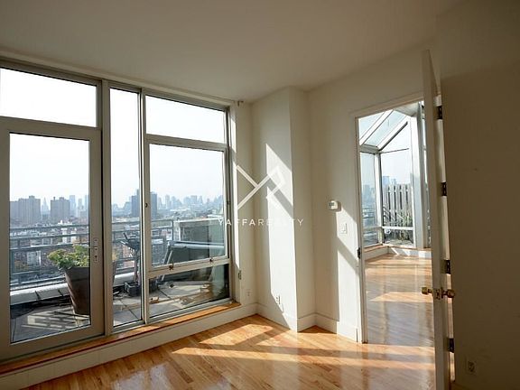 Welcome to 185 South 4th. Beautiful three bedroom duplex/two bathroom apartment in prime South Williamsburg location. Apartment is on the 12th floor with incredible views in two directions. Master bedroom is huge, with walk-in closet and en-suite bathroom. Living room has double-high ceilings and large balcony that is the width of the apartment. Very large private terrace upstairs and another smaller balcony. Private elevator access. Garage parking available. Gym in basement. Amazing roof deck with 360 degree views of Brooklyn and Manhattan. Door attendant is there during the day. Laundry and dishwasher in unit. Storage lockers available for extra charge. NO FEE on a two year lease Available now *All open houses are by appointment only*