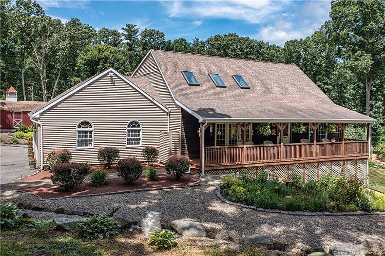 This immaculate Cape Cod style home has total privacy, manicured grounds, a large 42'X8' front porch, a 30'X16' screened back porch, a 24'X10' greenhouse, a 36'X13.5' garage shed, an 11X15' shed once used to house goats and above ground pool with decking around it. The home also boasts central air conditioning, a 12, 000 watt generator, kitchen with new appliances and granite counters, tiled floors, large pantry, large 20'X15' first floor master bedroom with walk in closet, recently remodeled master bath with twin sinks and copious medicine linen closet, second floor family room, two good sized bedroom and another full bath. A 22'X12' office is located through the garage with windows overlooking the magnificent gardens. Heating is supplied by an oil fired Buderus furnace and hot water by a new Heat Flow indirect water heater. This wonderful 10+ acre property has a delightfully pleasant water garden that sits behind an outdoor patio with fire pit. Three fenced garden areas house vegetable gardens and blueberry bushes. Other berries planted on the property are strawberries, raspberries and black raspberries as well as fruit trees. The newer above ground pool has a heater which is gas fired. Gas also runs the generator and is used as fuel for the cook top and the fireplace insert in the living room. The floor plan is open, light filled and spacious, this is a total turnkey operation, the best of materials have been used in the construction and this home pretty much has it all.