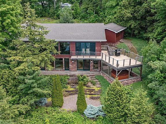 Escape to your own lakeside paradise! This home is a hidden gem, nestled on over an acre of lush land adjacent to an expansive 80-acre woodland park, offering unrivaled seclusion and serenity. Crafted in 2009 with meticulous attention to detail and using only the finest materials, this residence boasts a versatile layout. Embrace the beauty of nature through the floor-to-ceiling windows that frame breathtaking views of the tranquil lake, majestic Shelburne Point, and awe-inspiring Adirondack Mountains. Designed as a private sanctuary, the house is strategically positioned for maximum focus on the picturesque lakefront. With a 57' x 22' Great Room, there is total flexibility on the layout and rearranging spaces. A separate two-car garage adds to the property's allure, offering additional storage and potential for conversion into additional living space or an accessory dwelling unit. Blurring the lines between indoors and outdoors, this retreat seamlessly integrates with its surroundings, providing access to the exterior from most rooms, a generous deck, and covered patio complete with hot tub. The low-maintenance yard features ground cover, rock ledges, and natural outcroppings, perfectly complementing the home's minimalist aesthetic. Experience the epitome of luxury, privacy, and natural beauty in this extraordinary lakeside haven - a sanctuary just minutes from downtown Burlington.