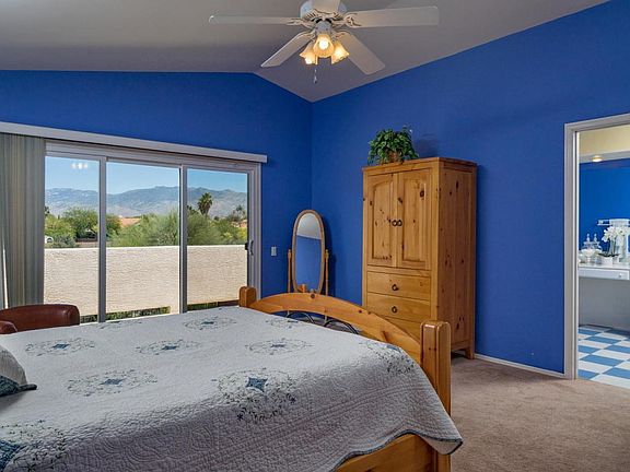 Adorable, Contemporary/Mediterranean-style home has stucco exterior, red tiled roof, large arched front window, courtyard-like feel entry and covered backyard porch/veranda. This well-loved home has protected natural desert behind backyard view fence, Santa Catalina & Rincon Mtn views; double gate; many Upgrades at time of construction;Vibrant LR, Providential French style kitchen w/white cabinetry,breakfast bar,kit dining space, built-in desk & pantry. Family room has gas fireplace,Italian tile which is throughout kitchen to entryway. Freshly painted, custom LR drapes(stay), gas stove (has elec outlet for electric oven/stove option), Bosch DW, dedicated electric circuit exists for a future microwave(NOT installed) above oven. New master bedroom slider & detail wall treatment in MasterBath