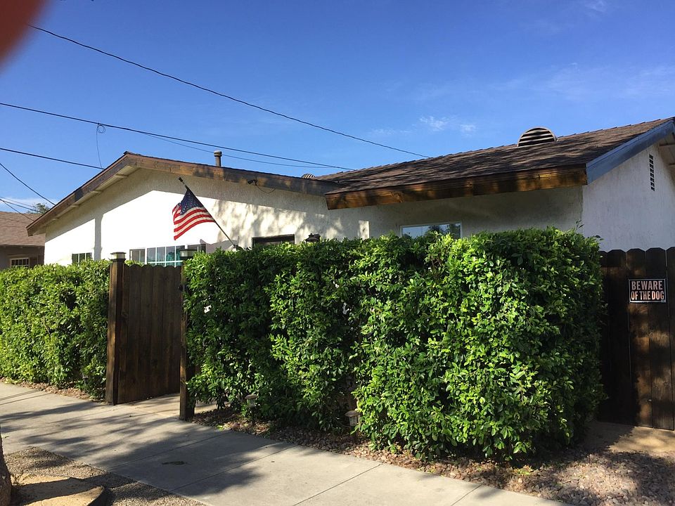 2 bedroom, 2 bath house for rent near Chapman University in Old Towne Orange. Bathrooms adjacent to each bedroom with large open living room and kitchen. Outside there is a large breezeway with wood paneled ceilings and a walnut bar top with opening leading into the garage. Adjacent to the garage is an overhang with stone tile and an artificial turf area yard. Property has a number of safety features including fenced entry with 6' ficus hedging, security cameras, and combination gate entry. Owner occupied since 2011 and well maintained. Dogs and cats OK (see Lease terms). Laundry hook-ups available. Tenant to supply own refrigerator and wash/dryer. Owner pays for trash, sewer, and water. Tenant pays for all other utilities. Dogs and cats OK with additional pet deposit of $275. Dog breeds deemed "dangerous" OK with insurance (inquire with Owner).
