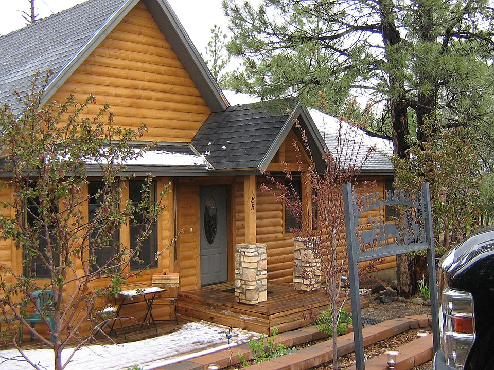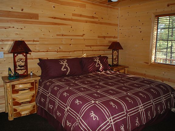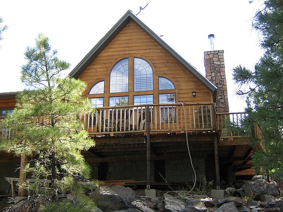 Simply Irresistible, This Stunning log sided cabin features 4 bedroom(master bedroom & Bath with double sinks is on the main level ) there is also 2 additional bedrooms and bath on the main level. The downstairs bedroom and bath is perfect for guest or kid's. This Beautiful Cabin was completely remodeled in 2008 having been Meticulously Maintained and in Immediate move in ready condition. The home has beautiful tongue and grove wood through-out the interior offering the ultimate in cabin atmosphere. The cabin is nestled in the pines on a super sized 17,428 sq ft lot (over 1/3 acre) which backs up to a canyon and seasonal creek . The rear yard complemented by the wrap-around deck is extremely private . The kids will love the tree house ! Hot Tub and some furniture is negotiable .