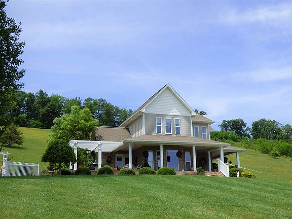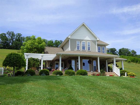Relax on your own veranda and enjoy the breathtaking mountain views as far as the eye can see! This well maintained 2 story home is situated on a large lot, just under an acre with a wrap-around porch to enjoy those wonderful sunsets and sunrises. The master bedroom is on the main floor along with a formal dining room full of windows to take in the view as well. A concrete drive, with a detailed stamped entrance, leads to the 2 car garage tucked in the rear of the home. There is a 4th sleeping area on the upper floor, however the septic system is a 3 bedroom. This home is a definite must see.