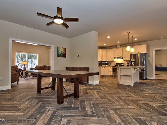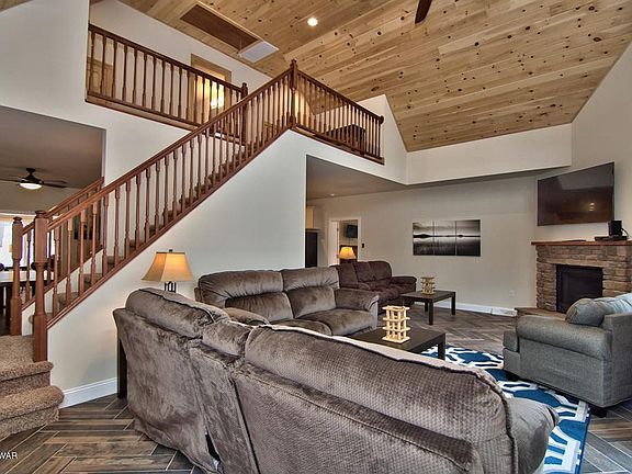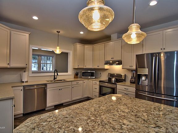 GORGEOUS BRAND NEW CONSTRUCTION CUSTOM BUILT MOUNTAIN CHALET HOME WITH AVAILABLE DOCK SLIP TO LAKE WALLENPAUPACK! Be the first to enjoy this 4 Bedroom, 4 Full Bath Quality Home, with 2 Master suites, High Efficiency Heat and A/C, 2 car over sized garage, and finished Lower Level Family Room. This is a completely upgraded quality built new home with premier tile flooring and quartz counter tops throughout! The kitchen features high end appliances, quality cabinetry, open floor plan and a large dual color quartz center island for entertaining! Awesome Great Room with 20' Cathedral Ceilings, Large Bedrooms, Big front porch and expansive wraparound deck with private Backyard. Home is being SOLD Fully Furnished at Listing Price