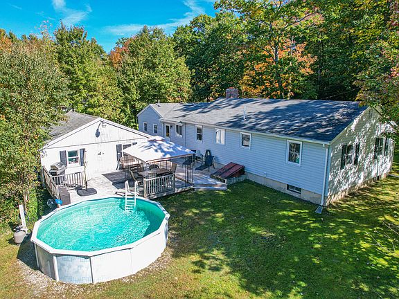 Enjoy one level living in this 3-4 bedroom Durham ranch with 2 bathrooms, heated 2-car garage and lovely, open 1 acre lot! Convenient to Freeport, Lisbon and Lewiston-Auburn plus snowmobile right from your yard. The entrance doubles as a den with a cozy wood stove. The adjacent, oversized room is currently a master bedroom but could also be a large family room perfect for entertaining over the holidays. You'll love the easy maintenance of beautiful wood floors throughout the entire home. The spacious kitchen opens to the living room and provides plenty of cabinets and storage. Three more bedrooms and the second bathroom are just down the hall of this traditional ranch for sleeping, working or playing. The dry, full basement provides plenty of storage. Right out the back door are attached decks taking you to the above ground pool, garage and beautiful yard with blueberry bushes & mature trees. Other features include generator hook-up, outdoor lighting and speakers. This wonderful Durham location provides ample recreation and many amenities including short drives to Freeport and Auburn. A beautiful home that checks all the boxes!