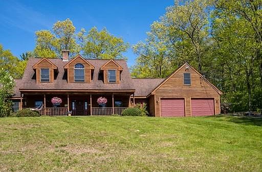 Welcome Home! This beautiful 4 bedroom Cape Cod Style home set high on top of a knoll offers a great scenic view from the Front Porch. The first floor has an amazing open concept, great for entertaining, the dining room with wood flooring is open to the Kitchen that offers a tiled floor, granite counter tops and large island with breakfast bar. The living room offers a custom built fireplace using stones from the property and hardwood flooring, the sun room is filled with natural sunlight and overlooks the deck and back yard. The large first floor master bedroom suite has cathedral ceilings, walk in closet and a full bathroom. Half bathroom/laundry room and mudroom that leads to the oversized 2 car garage. Second floor offers 3 nice sized bedrooms with ample closet space, a full bathroom, media room/office, sitting room with feature window, a play room that leads to the game/bonus room. The property is being sold as-is, inspections are for informational purposes only.