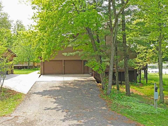 Private, Lake Iola estate complete w/your very own islands! You will be amazed at this beautiful residence from the main level master suite w/whirlpool tub, vaulted ceilings w/AMAZING windows facing your unmatched waterfront, split bedroom layout perfect for having guests over, finished walk out lower level w/2nd kitchen, living room & so much more. Outside you will find yourself surrounded on three sides by water, not to mention the pool & hot tub location! You need to see this one to believe it! House and extra garage are not located in a flood zone, no flood insurance required.