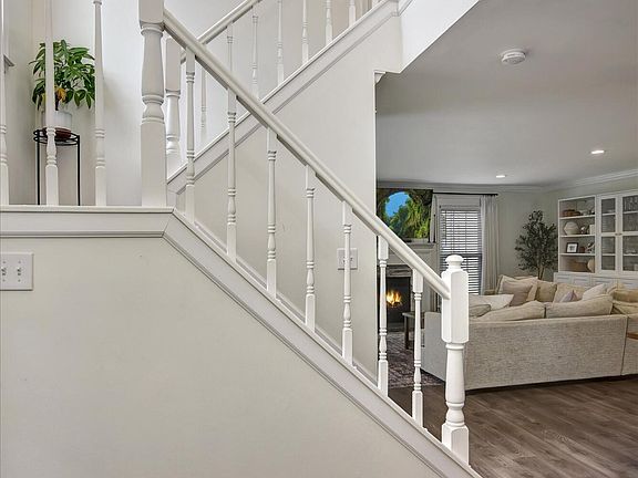 Wood burning fireplaceBeautiful kitchenVaulted ceilingRecessed lightingDouble sink vanityEnd unit townhouseDecorative moldings