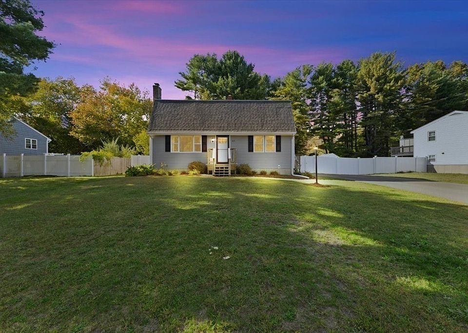 Welcome Home! This beautiful Gambrel/Cape offers 4 bedrooms and 2 baths. Maintenance free Vinyl Siding w/ Newer Windows. Town Water & Sewer. The first floor has a great open concept from the kitchen into the living room which is then complimented by a wood burning fireplace. First floor Bedroom/Office. The second floor offers 3 larger sized bedrooms w/ brand-new flooring throughout. Finished Basement offer an additional 500 sq. ft. A large fenced-in backyard w/ new stamped concrete patio. New Expanded Driveway. Close to 495 & 24. Massasoit State Park and All Shops.