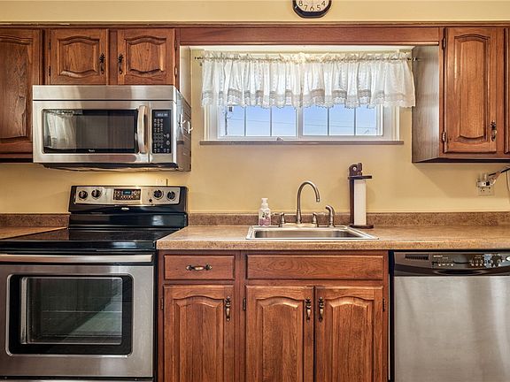 Welcome to 185 Thorn Street! This brick 2 bedroom ranch in the borough of Oklahoma could be the perfect place for you to call your first home or the perfect down-sizer! Enter the front door past manicured landscaping to soft tan carpeting and neutral wall colors. Step into the L-Shape kitchen just off to your right to find newer countertops and flooring along with a full stainless appliance package. The hallway leads to two spacious carpeted bedrooms and the recently updated full bathroom with a walk-in shower. The basement area is currently partially finished, and could easily be fully finished for additional space in the home. It is currently set up with a dry bar area and the rest to provide for storage. 1 car integral garage! Spacious, usable backyard with a large rear deck and covered side porch area that connect to enjoy the seasons with friends and family. 1 year APHW home warranty included for piece of mind!