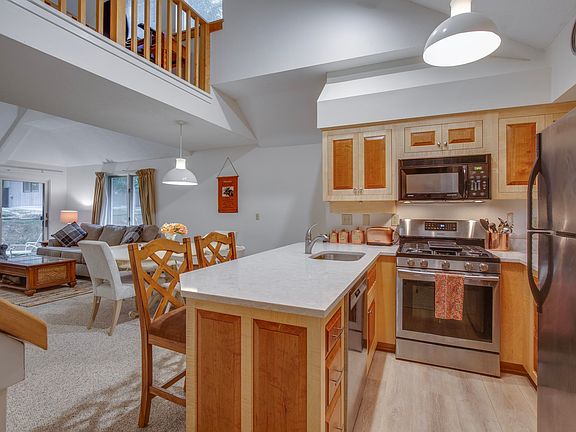 Exciting opportunity to own in The Woods! This two bedroom, two bathroom, plus loft, end unit, with no one above or below, is move in ready and sure to sell fast! Featuring an updated kitchen with beautiful custom-made maple and cherry cabinets, a wood burning fireplace, in unit washer/dryer, a recently updated furnace and water heater (both only three years old), flat, level entry and a private lockout bedroom suite. This unit is sure to please; move right in and take advantage of all that The Woods offers. Use of the Spa facility includes an indoor pool, hot tub, sauna, steam room, tennis courts, and full exercise facility. Owners also may enjoy Spa treatments at discounted prices. This is the ONLY Woods condo currently on the market.