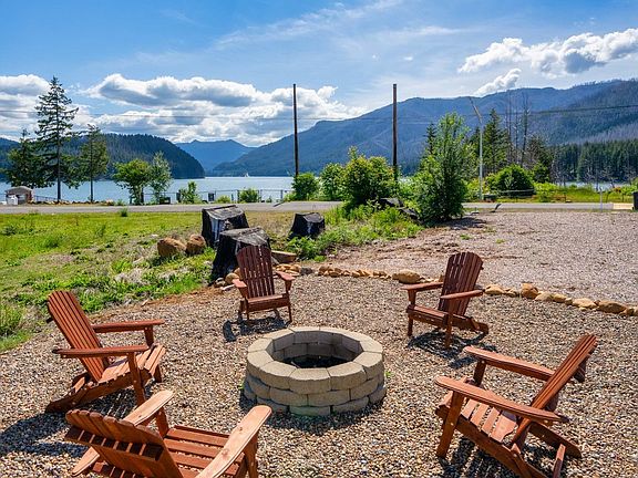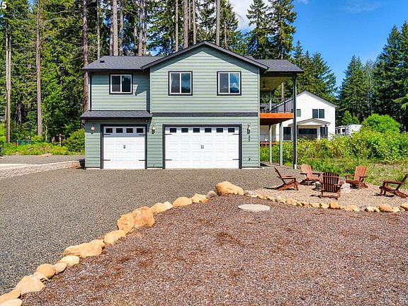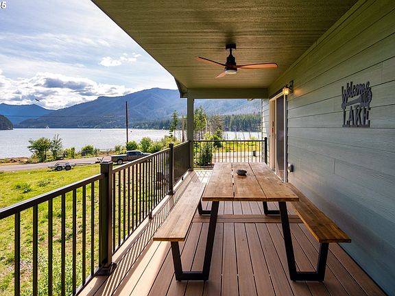 Million dollar views of Detroit Lake. Every window on the front of this house has views of the lake. Not to mention a fully covered, peaceful balcony with the most gorgeous view. This newer constructed home (2022) has all the upgrades you would want throughout; with quartz countertops, stainless steel appliances and luxury vinyl plank flooring, to mention a few. There is a laundry room upstairs where the main living areas are located. It has two bedrooms and two full bathrooms with tub/shower combos in both. Completely open concept living and dining areas complete with a kitchen bar area. Town side of the highway. Walking distance to the park for concerts. Walking distance to all of the towns eateries and stores. Walking distance to Day Use Lake Access areas. Views of 4th of July fireworks from your own private balcony. This home features a long driveway, perfect for RV parking if you have friends/family who want to visit. Huge oversized 3-car garage for boat and toy storage, or just as a great hang out/game area. Don't miss out on this one-of-a-kind lake home. Seller is real estate licensee.