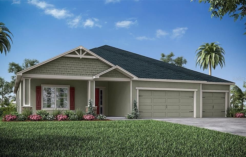 Under Construction. Introducing the Wynter, a new Florida home plan by Highland Homes! With a traditional exterior, the Wynter provides a classic-Florida look combined with the convenience of a modern designed interior. You will love the open living area comprised of a gathering room, sunny dining cafe, and an open kitchen with a counter-height bar and large walk-in pantry. Formal dining room, Drop zone at garage entry and foyer closet, to keep daily life organized. Dedicated laundry room, spacious owner's suite with a stylish tray ceiling, oversized walk-in wardrobe, and en-suite bath with a tiled shower, dual vanities, linen closet, and water closet, Convenient hall bath located between bedrooms 3 and 4, 9'-4" flat ceilings throughout, with a tray ceiling in the owner's suite, 8 ft. entry doors and sliding glass doors, Covered lanai with access from the gathering room and bath 3, Spacious covered front porch