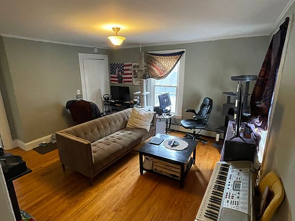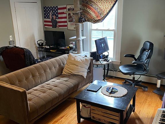 Large second floor apartment (((AVAILABLE APRIL 15))) with high ceilings for rent in a thoughtfully renovated antique home in Riverton. This home offers convenience and proximity to all of the amenities in Portland. Easy access to the Maine Turnpike; University of New England; University of Southern Maine; and Rock Row. This spacious rental offers two large bedrooms, a large living room, and one small den off of the kitchen. The larger front bedroom offers south facing windows and a closet. The second bedroom offers a large closet. The living room also has a coat closet. The dine-in kitchen offers an electric oven with a stainless steel hood, a large double sink, and enough room for a dining table. Off of the kitchen is a small bonus room that overlooks the spacious back yard. In addition, this rental includes use of a Maytag washer and dryer located in the basement, two off-street parking spots, and some storage in the basement. Pets that have been spayed/neutered and are up to date at the vet will be considered. Tenant must be able to abide by city trash and recycling guidelines and is responsible for the weekly removal of their trash. Rent includes heat; water; and laundry. Tenant responsibilities include snow removal on the side stairs. Landlord removes snow in driveway. Tenant must properly dispose of personal trash and recycling on a weekly basis and agree to not store it anywhere on the property. Tenant acknowledges that personal property used outside must not be stored outside. No pools or trampolines in the back yard. Tenant agrees to cohabitate with the downstairs tenants in a peaceful and respectful manner to ensure the enjoyment of living at the house for all. One year lease is preferable, but this is negotiable for the right candidate.