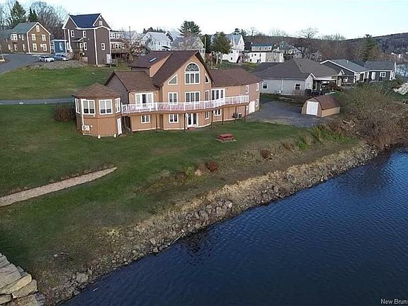 This executive 6 bedroom 3.5 bathroom home sits on the banks of Meduxnekeag Creek providing a view from all levels. Enjoy sitting on the composite no maintenance deck that runs the length of the back and leads to an insulated heated gazebo where you can sit on cooler evenings heated with ductless heat pump. Upon entering from the garage you enter to a large mudroom. On to the working kitchen/dining area. Abundant amount of cherry cabinets and central island. Large master bedroom with whirlpool tub and shower with patio doors to deck and a spare bedroom. Living room again over looking the creek. Main floor laundry and half bath. Top floor has 2 bedrooms plus delightful bright room with an amazing view. Finally the basement has two bedrooms, bath, workshop with garage door, a storage area and more. Basement has in floor heating. Easement for town sewer and NbPower/NBTel. Warranty remaining on heat pump. Put in 2020. Roof replaced in 2020