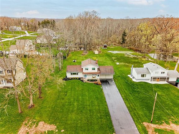 TONS of opportunity for this ONE OWNER home on NEARLY 2 acres! This house offers great space from the front foyer, to the LARGE living room area, dining room, raised hearth fireplaced family room and eat in kitchen! There's a convenient 1st floor laundry & full bath AND a HUGE 4 season room to be enjoyed year round! Upstairs you'll find 3 bedrooms & 2nd full bath! The mechanics are SOUND w/4 zone hot water heat w/BRAND NEW boiler and hot water tank, UPGRADED Mitsubishi air handler system w/AC & heat, UPDATED 200 amp electrical panel & NEW driveway! Plus an epoxied garage floor & composite deck overlooking the EXPANSIVE yard - perfect for outdoor activities! Delayed negotiations 5/3/2022 at 2 PM