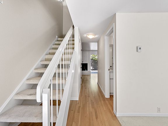 Welcome to this beautiful and updated Edgewood townhome. A desirable end unit where modern elegance meets tranquil privacy. This charming property features a fabulous kitchen that opens seamlessly into a cozy family area, complete with a gas fireplace and stainless steel appliances and pantry. Enjoy the indoor-outdoor living experience with easy access to a private sunny patio courtyard which also features a convenient retractable awning.This alluring unit also includes a large attached 2 car garage. The remodeled bathroom boasts luxurious touches, including cultured marble and durable marmoleum flooring. The master bedroom offers a private balcony overlooking a serene common area, providing a perfect spot to enjoy the local wildlife and peaceful surroundings.Nestled at the end of a quiet dead-end street, this home is part of a well-managed HOA community and centered around a picturesque creek. Fantastic walking trails along Brae Burn creek throughout the 12 acre complex. Featuring a pool and clubhouse in a serene wooded setting for residents to enjoy. Conveniently located under a mile from Edgewood Shopping Center, as well as local schools and parks, this property combines seclusion with easy access to amenities.