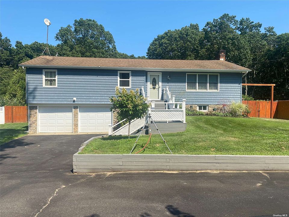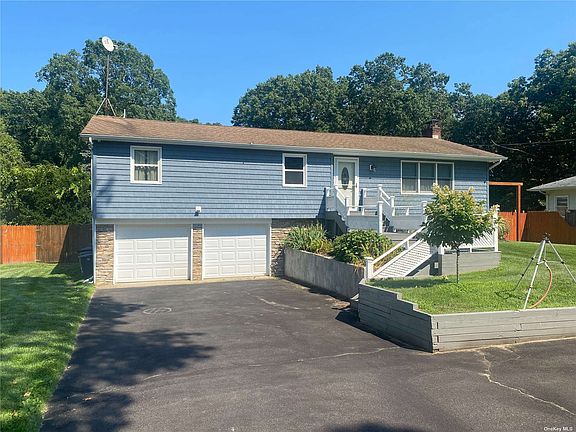 PRICE REDUCED TO $415K!!! Tremendous opportunity! High Ranch on half acre of property with trees, shrubs, flowers, species plantings centrally located in Centereach with easy access to shopping, entertainment, public transportation, SUNY, beaches, cultural landmarks and more. Attached two car garage. Many new and newer appliances and an above-ground pool situated on a large backyard with vegetable gardens and a fenced-in property and shed with privacy galore. The basement is partially finished and can easily be converted into another bedroom. Newer semi-circle driveway with dry-well and new roof, siding and windows. 3.5 ton new Central Air Conditioning system with new evaporator.