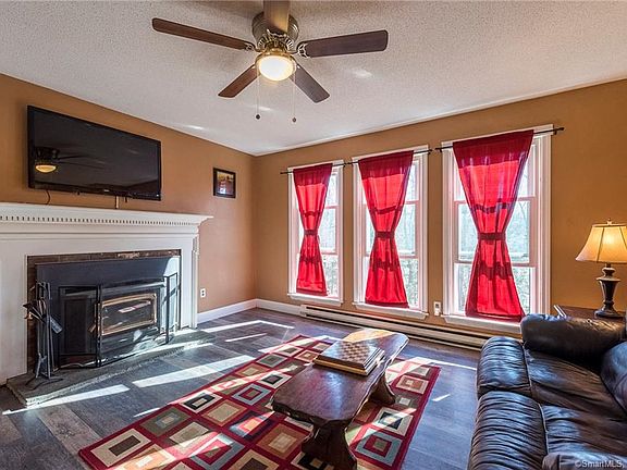 Not your average Raised Ranch! Located on a private hilltop location on 2.92 acres. Open floor plan that leads into large sunken family room with a projector, new floors, Platinum Windows, pellet stove and a slider to the deck and patio. Lower level Den with Vermont Casting wood stove, new vinyl plank floors and a bonus room for guests. Lower Level has full bath and laundry room and a two car garage. Huge level yard with a fire pit area, patio, grill area, 3-outbuildings one which includes a full workshop with power. Thermopane windows, new septic, 200 amp service with generator hook-up. Monthly Electric Budget only $206 including Heat and Power.