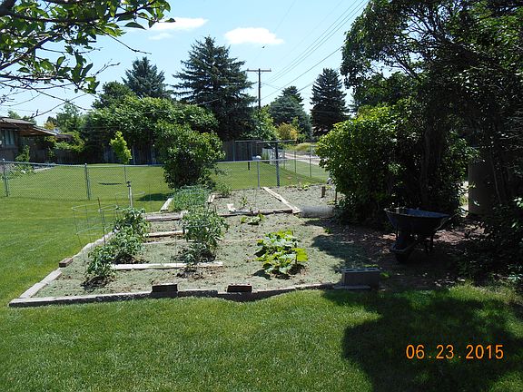 Large corner lot with mature landscaping. Established neighborhood. Covered east-side patio. Master bedroom plus 2 more on main level. Large master bath. Vaulted family room open to kitchen. Double oven, gas stove top. Large utility/mud room. Oversized garage. Additional entry to basement. Basement shop, recreation room, office, 2 bedrooms, large bath.